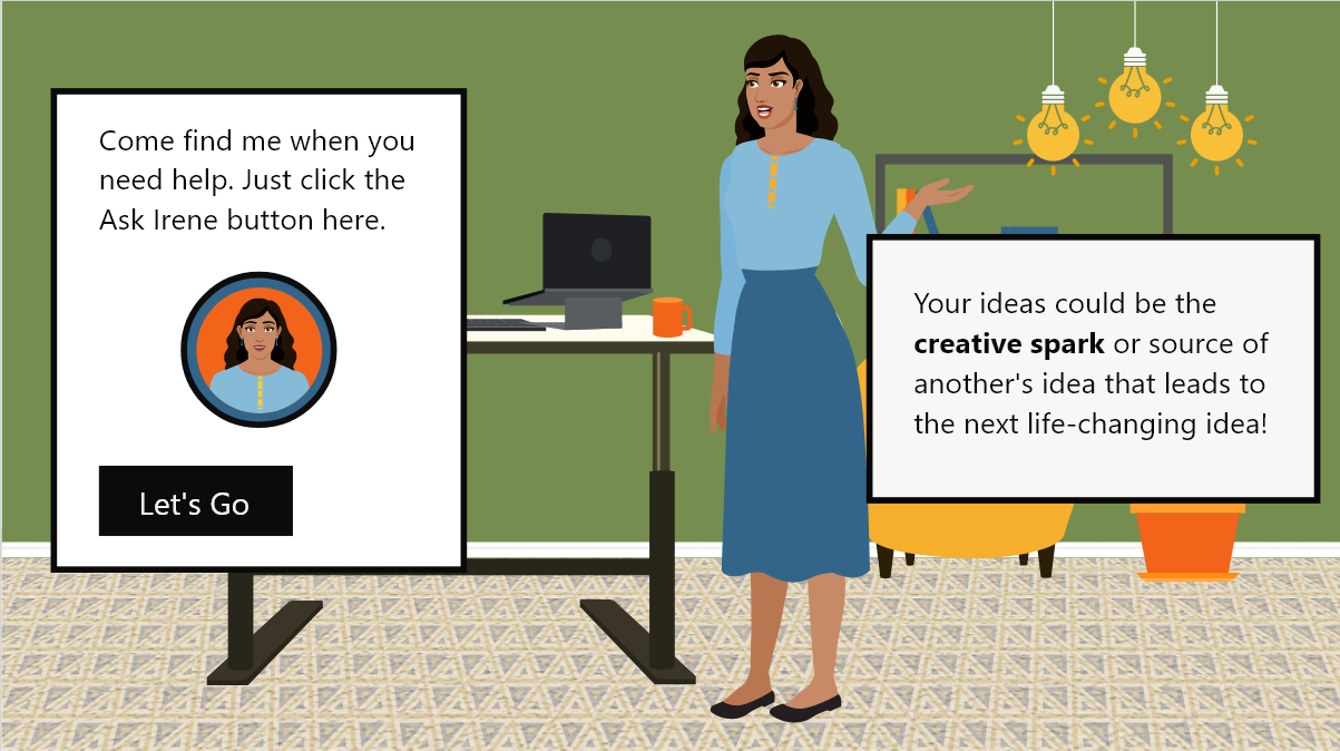 While working with Subject Matter Experts, it was decided there would be two solutions: A learning scenario that would focus on how managers manage their teams to encourage speaking up as well as a learning scenario for new employees. Although employees already ‘know’ that they work within a company that values ideas and the critical thinking skills they possess, they can begin to feel imposter syndrome and do not always express their thoughts and hunches. We know telling does not always translate to doing. This is the solution you will experience here as a story-driven eLearning scenario which immerses employees in a virtual meeting